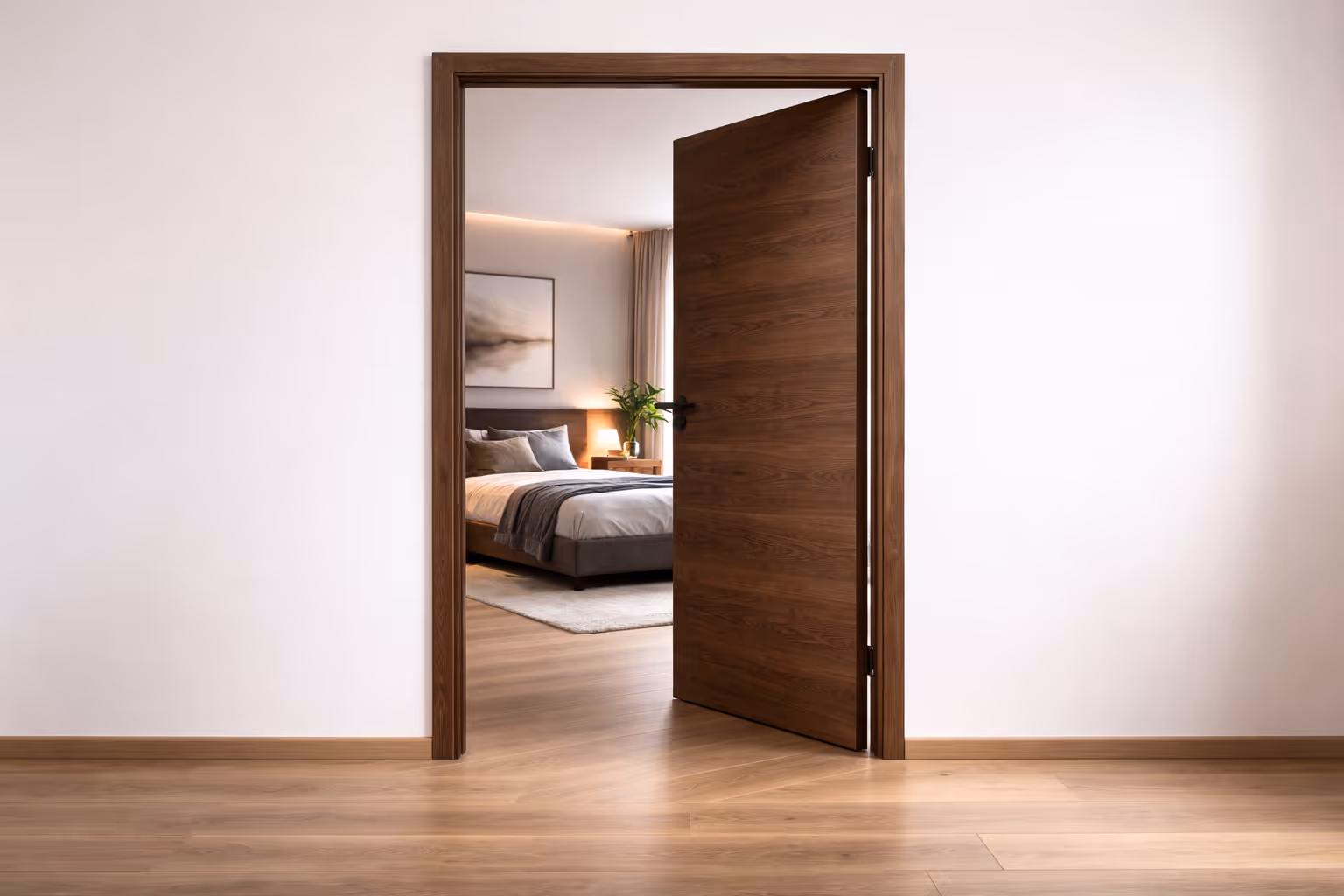Die Holz-Innentüren in der Ausführung „Avantgarde bündig einschlagend“ stehen für modernes, puristisches Design kombiniert mit hochwertiger Verarbeitung und langlebiger Qualität. Bei dieser Ausführung schließt die Zarge bündig auf das Türblatt auf, wodurch ein geradliniges, elegantes Türbild entsteht, das sich harmonisch in jeden Raum einfügt. Hochwertige Materialien und präzise Verarbeitung garantieren Stabilität, Langlebigkeit und einfachen Komfort im Alltag. Mit verschiedenen Holzarten, Oberflächen und Dekoren lassen sich die Türen individuell an Ihr Wohnkonzept anpassen. Holz-Innentüren in der Ausführung "Avantgarde bündig einschlagend" bieten zeitloses Design, Funktionalität und stilvolle Gestaltungsmöglichkeiten für jeden Raum.