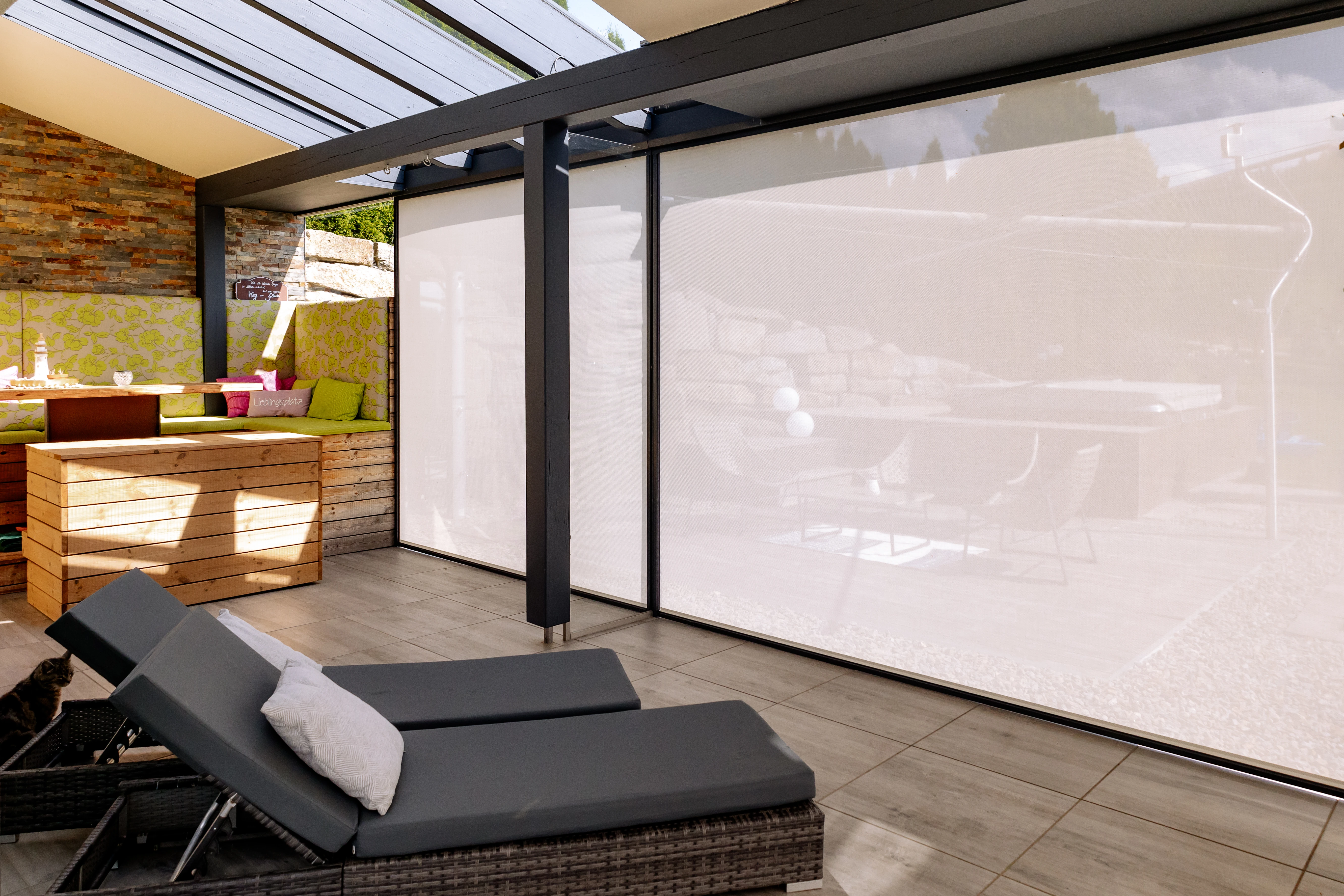 Die textilen Screens reduzieren Hitze und UV-Strahlung, sorgen für ein angenehmes Raumklima und erhalten gleichzeitig den Blick nach draußen. Erhältlich in verschiedenen Stoffen, Farben und Transparenzstufen, lassen sich Zip-Screens manuell oder motorisiert steuern.